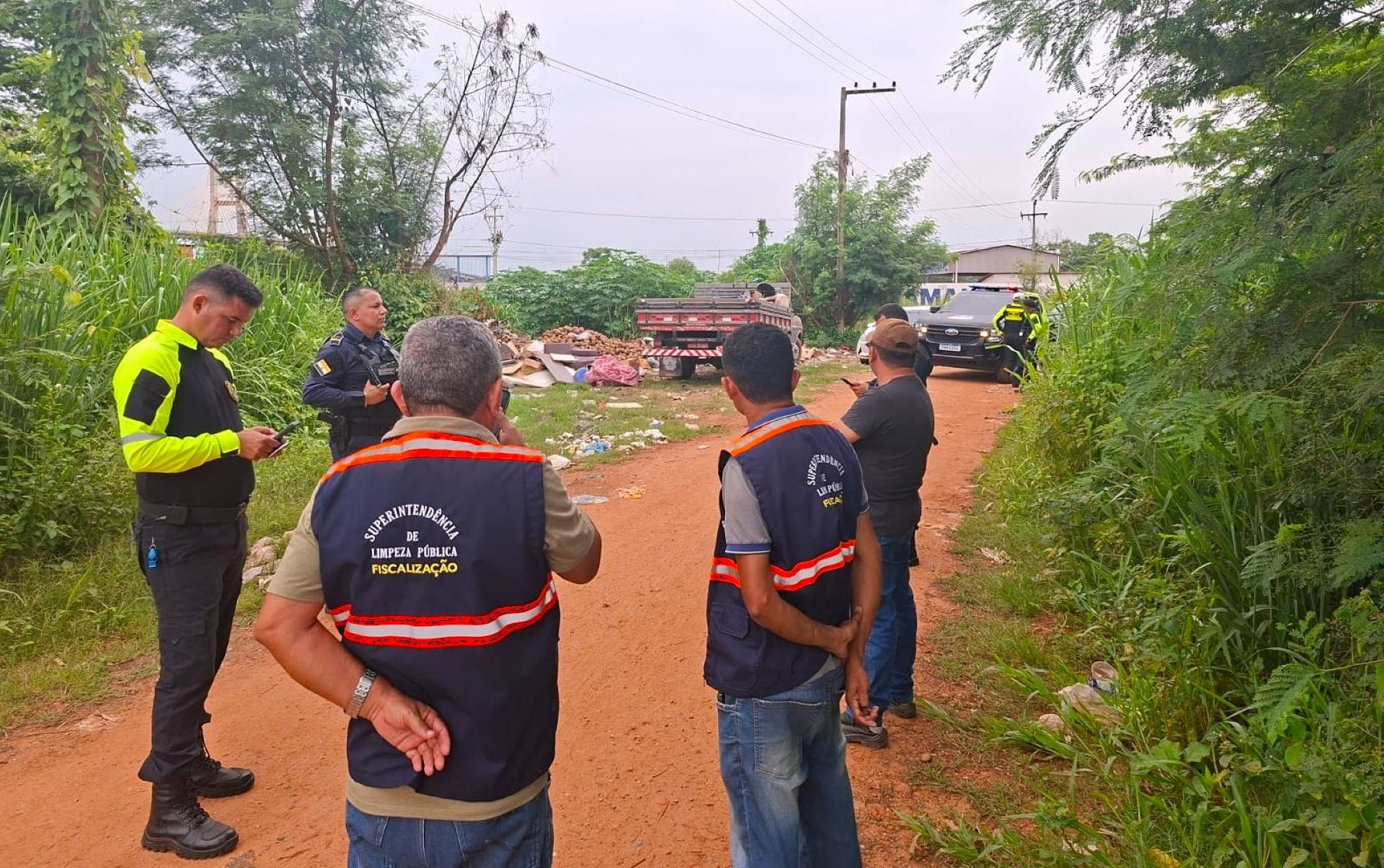 Guarda Municipal de Imperatriz flagra descarte irregular de resíduos na via de acesso à Praia do Cacau após denúncia da Superintendência de Limpeza Pública. (Foto: Divulgação/GMI)